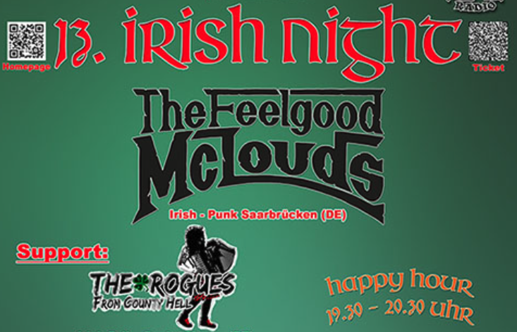 Als Headliner sorgen die The Feelgood McLouds, die zuletzt im Rahmen der Green Machine Tour mit Fiddler’s Green begeisterten, und als starke Begleitung tritt die altbekannte Band The Rouges from County Hell auf, die bereits mehrfach erfolgreich für Stimmung im Sägewerk sorgten und zudem eine beliebte Band beim Burg Herzberg Festival sind.